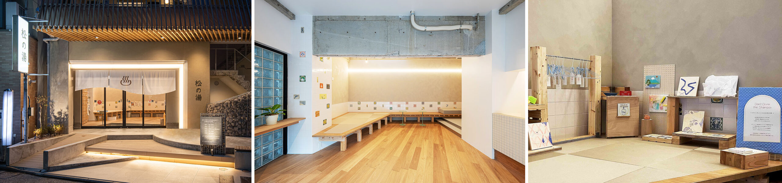 金沢で運営する銭湯「松の湯」では、休憩スペースを活用し、金沢美術工芸大学の学生による作品展示を実施しました。また、変わり湯の一つとして、学習院大学と日本女子大学の共同研究から生まれた「マイトルビンの湯」を開催し、日常の入浴体験にささやかな変化や楽しみを添える試みも行いました。いずれも、銭湯という身近な場を通じて、訪れる方が文化や体験に自然に触れられることを目指したものです。