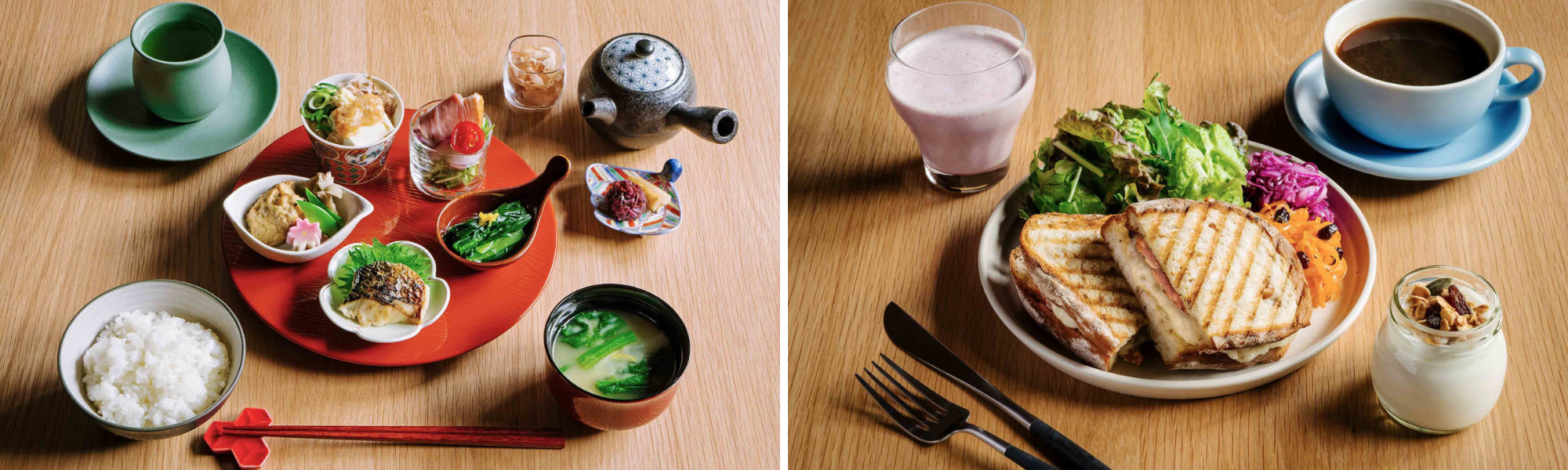 THE MACHIYA LOUNGEでは、地元産の食材や旬の食材を取り入れ、毎朝作り立てのあたたかな2種類の朝食をご用意しております。どちらのメニューも、ご宿泊のお客様はもちろん、ラウンジへご来館の皆様にお楽しみいただけます。